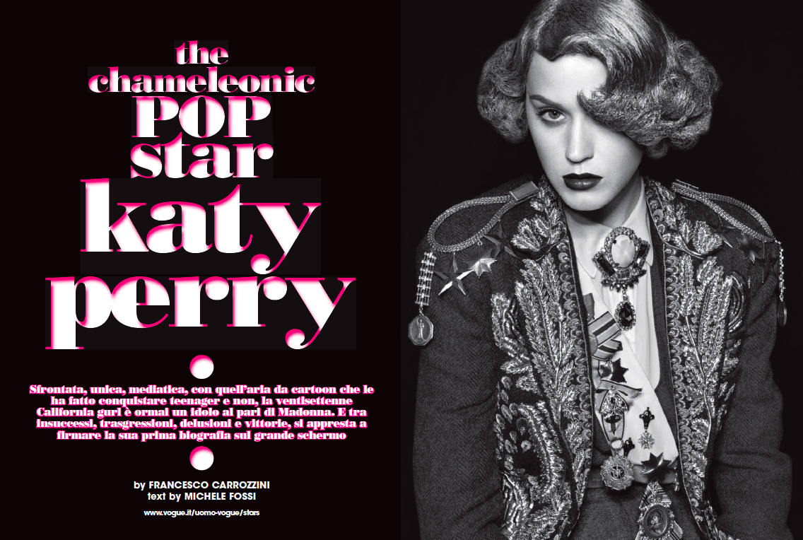 «Sono cresciuta in una famiglia molto religiosa» ha dichiarato, «dove l’unica musica che mi era concesso ascoltare era il gospel. Passare pomeriggi a guardare Mtv come le mie coetanee? Impensabile. Il solo fatto di nominare Madonna era considerato un atto blasfemo». I genitori, notata la sua spiccata inclinazione musicale, la incoraggiano tuttavia ad intraprendere una carriera di cantante, purché si trattasse di musica religiosa. Dopo aver cantato per anni nel coro di una chiesa, nel 2001 Katy Perry pubblica con il suo vero nome – Katy Hudson – un album omonimo di canzoni gospel, che passa tuttavia del tutto inosservato. È il primo di una lunga serie di fiaschi e porte sbattute in faccia, di false speranze seguite inevitabilmente da cocenti delusioni: per ben due volte, importanti case discografiche le offrono un contratto salvo poi ritrattare all’ultimo minuto. Fino al 2008, quando ne firma uno con la Capitol Music Group, la lungimirante casa discografica che produce il suo primo album pop, “One of the boys”, affidandolo alle mani di Dr. Luke, talentuoso producer di Alanis Morissette. La miscela tra i due si rivela esplosiva e fa immediatamente boom: “Hot n cold” raggiunge le vette delle classifiche di oltre quindici paesi e le top 10 di tutti gli stati dove era stata diffusa; “I kissed a girl” viene scaricata 3.8 milioni di volte. Tra i prossimi progetti della cantante vi è un docu-film autobiografico in 3D intitolato “Katy Perry. A part of me” la cui uscita negli Stati Uniti è prevista per il 4 Luglio (per vederlo nelle sale italiane dovremo attendere invece il 4 Agosto), che toccherà, promette, “everything in between”, incluso il dolore per la separazione dall’attore, comico e presentatore britannico Russell Brand, con cui Katy è stata sposata quindici mesi (una delle relazioni più mediatizzate degli ultimi tempi, con tanto di canale twitter dedicato), fino all’avvio delle pratiche di divorzio, lo scorso febbraio. Una sofferenza che la cantante non ha esitato a definire “devastante”, e che influenzerà il suo prossimo lavoro musicale. «Sarà un album decisamente più cupo dei precedenti», promette. «Era inevitabile, dopo quello che ho vissuto. Se avessi una macchina del tempo e potessi tornare indietro, lo farei. Ma tant’è. Scoprirete un’altra parte di me».