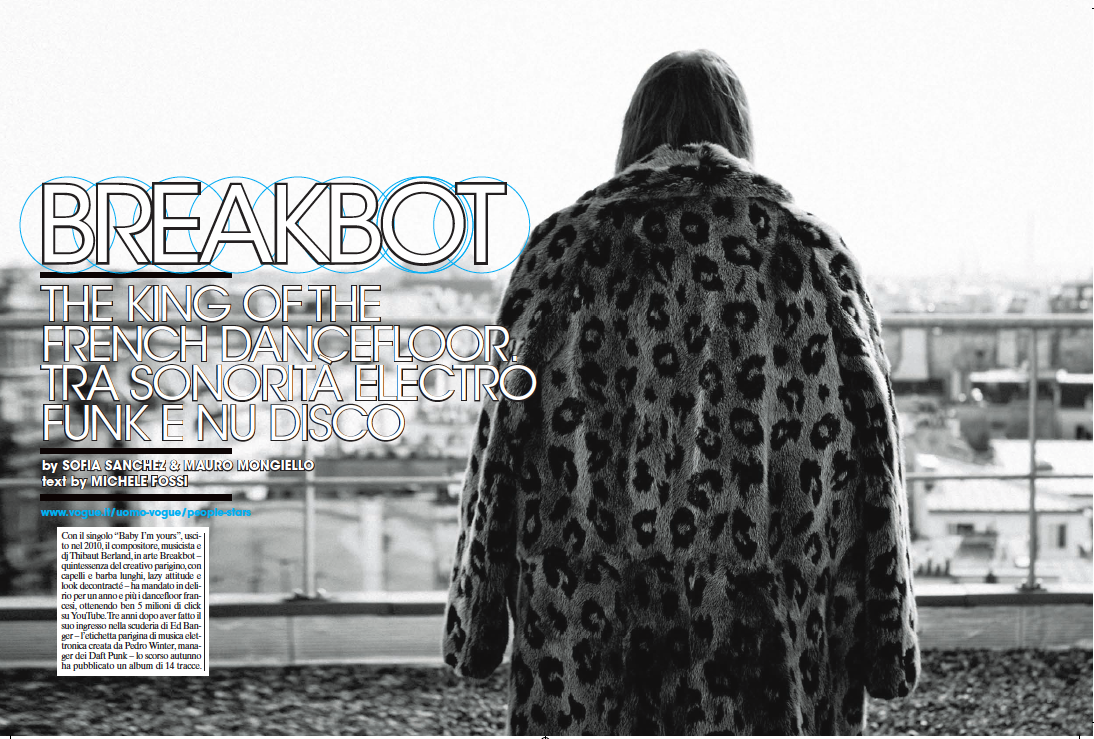 Noto per il suo sound, a metà strada tra l’electro-funk, la french house, il synthpop e la nu-disco, descritto da più di un critico musicale come “nostalgico” e “vintage” per via delle forti referenze al funk ed alla disco degli anni ’70, con il singolo “Baby, I’m yours” il compositore, musicista e DJ Thibaut Berland, in arte Breakbot, nel 2010 ha mandato in delirio i dance floor francesi, guadagnandosi ben 5 milioni di click su youtube. Tre anni dopo l’ingresso nella scuderia di Ed Banger – l’etichetta parigina di musica elettronica creata da Pedro Winter, manager dei Daft Punk, di cui fanno parte anche i Justice – lo scorso autunno pubblica un atteso album di 14 tracce, “Be your side”, che gli vale il plauso della critica (la BBC lo ha definito “impeccably crafted”), confermandosi uno degli artisti electro francesi più osannati del momento. «Comporre significa per me essenzialmente cercare di dare nuove forme, il più possibile attuali, alla musica degli artisti che più amo e che ascolto da sempre, come Prince, The Beach Boys, Michael Jackson, Stevie Wonder.», spiega l’artista parigino, noto anche per aver realizzato oltre 40 remix, tra cui spicca quello del languoroso “A Thing For Me” di Metronomy. «Sono la mia scuola. Realizzandoli ho sviluppare l’universo sonoro nel quale intendevo evolvere come autore originale».