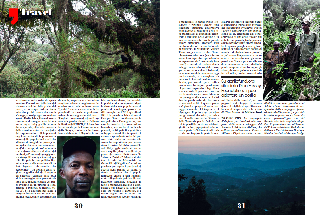 “La compagnia d’elezione per involarsi alla scoperta della natura selvaggia del Ruanda è Ethiopian Airlines, che collega quotidianamente Roma e Milano a Kigali con scalo – e possibilità di stop over gratuito – ad Addis Abeba. Attraverso il tour operator della compagnia (www.ethiopianholidays.com ) è possibile inoltre organizzare esclusivi tour personalizzati sia del Ruanda che della capitale etiope”.