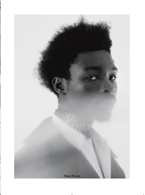 È stato musa del designer di accessori britannico Christopher Raeburn, ha sfilato per Grace Wales Bonner ed è apparso in varie campagne pubblicitarie, ma King Owusu si considera innanzi tutto un illustratore. E, a sorpresa, un punk. “Essere punk per me significa essenzialmente essere autentici, spontanei, senza curarsi del giudizio altrui. Sono un control freak, e quando lavoro, mi piace occuparmi di tutto, dalla A alla Zeta. Illustrare è il mio modo di decostruire il mondo, e riassemblarlo a modo mio”. L’ispirazione per le sue illustrazioni, alcune delle quali confluiscono con abili taglia e cuci negli abiti che è solito indossare quando si aggira per le vie della natia Londra, nasce da tutto ciò che gli capita a tiro. “Il melting pot di questa città è una fonte continua di stimoli visivi, a cui si aggiungono i consigli e l’ispirazione che mi vengono dagli amici, dalla famiglia, dalla scuola.. mi considero una vera e propria spugna!”.