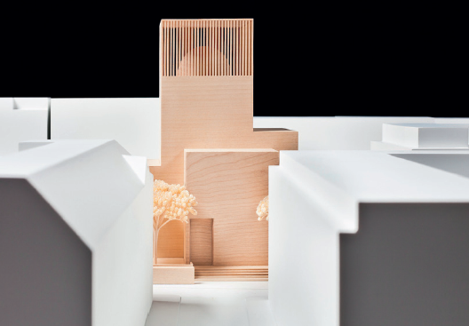 Il modellino della House of One presentato al concorso lanciato nel 2012. Sottili fenditure verticali segnano il fronte della moschea. Sul lato opposto, la sinagoga. La chiesa protestante al centro. Petriplatz ha un forte valore simbolico: nel Medioevo era la piazza centrale di Cölln, uno dei primi insediamenti che hanno dato origine a Berlino. Qui sorgeva la Petrikirche, le cui fondamenta, rinvenute tra il 2007 ed il 2009 nel corso di scavi archeologici, saranno visitabili all’interno di House of One.