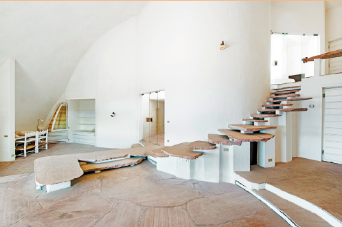 Della “Cupola”, la futuristica semisfera di cemento che Michelangelo Antonioni commissionò all’architetto Dante Bini nel 1964 in Costa Paradiso, si è scritto soprattutto nei termini di un idilliaco nido d’amore nella natura dove il regista ferrarese era solito rifugiarsi con la sua amante e musa Monica Vitti. E come tale, questa astronave posatasi con grazia in mezzo all’odorosa macchia sarda, fu sicuramente concepita: impossibile non percepire, quando se ne varca la soglia, la valenza erotica dalla sinuosa scalinata in granito rosa che ne domina il salone, una passerella concepita perché il regista, comodamente seduto in poltrona, potesse godere appieno delle sensuali apparizioni della diva ogniqualvolta scendeva dai piani alti. “Villa Antonioni nacque per essere un luogo di isolamento radicale, e non solo romantico: per oltre dieci anni, anche dopo il naufragio della relazione con la Vitti, fu l’eremo dove il regista ferrarese soleva rinchiudersi a lavorare indisturbato ai suoi copioni anche per tre, quattro mesi di fila, in compagnia solo di libri”, racconta l’architetto Lucio Fontana, autore di “Dante Bini. Villa Antonioni in costa Paradiso” (Altralinea Editore). “Ma in ugual misura — si tende a dimenticarlo — Villa Antonioni fu progettata per essere fertile luogo di incontro e condivisione per il regista ed i suoi amici intellettuali, da Tarkofky a Tonino Guerra: sotto la sua volta cela ben cinque stanze e quattro bagni, ed un lungo tavolo bianco dall’insolita forma a uovo, in grado di ospitare un’allegra compagnia di dieci e più commensali”. Fu Monica Vitti, rivela Fontana nel volume, a combinare un incontro a Roma tra l’amico Dante Bini ed Antonioni. “Il regista rimase molto impressionato dalle “Binishell”, le immaginifiche cupole di cemento che l’architetto bolognese stava costruendo nel mondo, e ne volle una anche lui per Costa Paradiso: aveva infatti già intuito che solo lo splendore alieno di una forma geometrica pura e astratta, più appartenente al mondo platonico delle idee che a questo mondo, avrebbe potuto completare meravigliosamente, senza sfigurare, quell’angolo di natura sarda così selvaggia e incontaminata”.