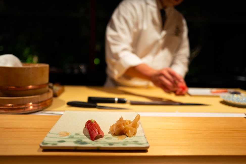 Venticinque anni di esperienza nel servire i suoi sushi direttamente ai clienti al di là del bancone e un rigore maniacale, quasi da samurai, nel taglio delle carni di pesce e nella scelta degli accostamenti, sono i punti di forza di questo minuscolo ristorante su due piani a Ginza. Oltre ai più noti sushi di tonno, così teneri da sciogliersi in bocca, Harada si avventura con sicurezza in regioni del gusto del tutto inesplorate, senza mai sbagliare un colpo: particolarmente convincenti il sushi di uni (riccio di mare) e caviale, l’esotico “kawa hagi” (un piccolo pesce tropicale) servito con parte del fegato, e, forse il più convincente, quello con Ikura (uova di salmone) e tartufo bianco, che si rivela a sorpresa un’ottima combinazione.