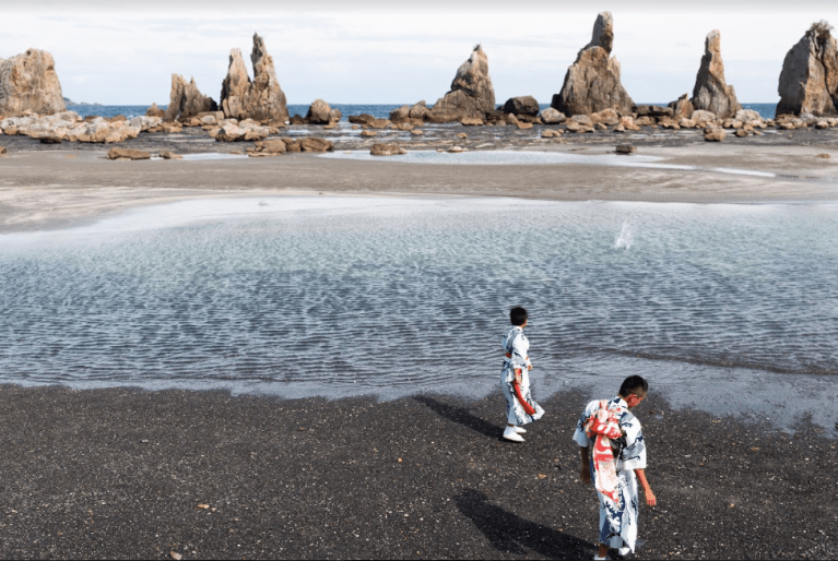 L’indomani, all’alba, ci attende la visita al mercato del pesce “Katsura”: molto più piccolo di quello di Tokyo, ma primo in Giappone per i volumi scambiati di tonno fresco. Grazie alle sue piccole dimensioni, ed all’assenza pressoché totale di altri visitatori, ci si trova ad essere gli unici privilegiati spettatori, dall’alto di un ballatoio, delle concitate contrattazioni di prezzo. La vista, da quell’altezza, è a dir poco spettacolare: l’intera superficie del mercato è ricoperta da un reticolato di tonni disposti, con precisione nipponica, in ordinatissime file. (Si dorme nel vicino Hotel “Naka no shima”, una grande struttura non priva di un certo fascino vintage, situata su un’isola prospiciente il porto di Nachikatzura, che si raggiunge per mezzo di un battello gratuito. Fiori all’occhiello dell’hotel il ricco menu di pesce crudo in dieci portate, tra cui diverse varietà di aragosta, e l’onsen vista mare). Sulla via verso Osaka, il giorno successivo, si procede poi ad esplorare la costa. Molto bella Ashigui Rock, tra le spiagge più fotogeniche del Giappone con i suoi celebri faraglioni messi in fila come soldatini. Qua, migliaia di anni fa, la lava si fece largo dalle viscere della terra fino sotto il mare, producendo, tra mille vapori e lapilli, delle curiose formazioni rocciose che ricordano le dita di una gigantesca creatura ctonia impaziente di riemergere alla luce del sole.