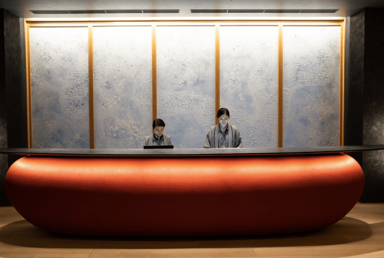 La sua lobby è stata dunque concepita come un luogo di relax, con soft drink gratuiti a disposizione degli ospiti 24 ore su 24, un ampia collezione di artigianato locale per rifarsi gli occhi e la sera, per chi lo desidera, soba a volontà compresi nel prezzo. Molto ricca la colazione giapponese con cui l’hotel vizia i suoi ospiti, con tanto di varietà pregiate e costose come il Nodoguro (“black throat”), un pesce locale apprezzato per le proprietà benefiche dei suoi grassi.