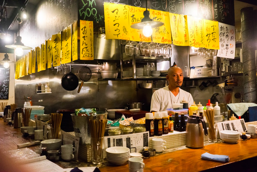 Un enorme Gallo dipinto su un telo bianco che copre l’entrata, segnala che siamo arrivati a Tori bochi, fumoso e accogliente ristorante di Kanazawa. La specialità del locale è la carne di pollo, proposta come spiedini yakitori, sukiyaki , e, per i più temerari, persino nature (!) come sashimi, accompagnata unicamente da wasabi, aglio e salsa di soia.