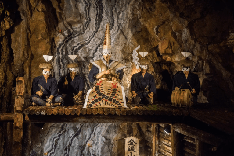 Per godere di un angolo di Giappone graziato, chissà ancora per quanto, dal flagello del turismo di massa, vale la pena programmare una sosta di qualche giorno nella remota isola di Sado. (Ci si imbarca da Nigata, dopo una sosta di qualche giorno a Kanazawa). A dispetto delle sue grandi dimensioni (è la prima isola per grandezza del Giappone, escludendo le quattro principali), Sado preserva pressoché intatto il suo fascino di provincia remota, ed offre al visitatore una notevole varietà paesaggistica, tra pianure verdissime, aspre montagne, foreste, spiagge di sabbia e scogliere. Il lusso di essere quasi sempre soli a visitare le sue attrazioni, in particolare, contribuisce a trasformare le esperienze fatte sull’isola tra le più magiche ed indimenticabili dell’intero viaggio in Giappone. Sado abbonda infatti di luoghi abbandonati, o quanto meno deserti per gran parte del tempo. Come il bel villaggio di pescatori di Shukunegi, un dedalo di stradine strettissime su cui affacciano tradizionali casette di legno ingrigito dalla salsedine, sede, già nel ‘600, di un importante cantiere navale. O i templi di Seisuji e di Chokukuji, dove, come in un romanzo di Salgari, ci si trova a camminare in religioso silenzio tra statue di demoni, stupe ed edifici di culto seminascosti dalla vegetazione. Al Daizen Shrine troviamo invece uno spartano teatro del No settecentesco abbandonato, con, ancora perfettamente conservato, il tradizionale dipinto di un pino sullo sfondo della scena. D’obbligo anche una visita all’ex miniera d’oro “Kinzan”, un tempo la più importante del Giappone, dove androidi vestiti da minatori ed armati di piccone ricreano, all’interno del labirinto di cunicoli che la compone, scene di vita lavorativa quotidiana.