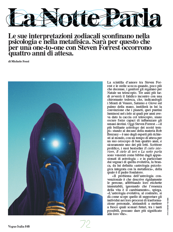 Le sue interpretazioni zodiacali sconfinano nella psicologia e nella metafisica. Sarà per questo che Steven Forrest è così richiesto che per una one-to-one con lui occorrono quattro anni di attesa.